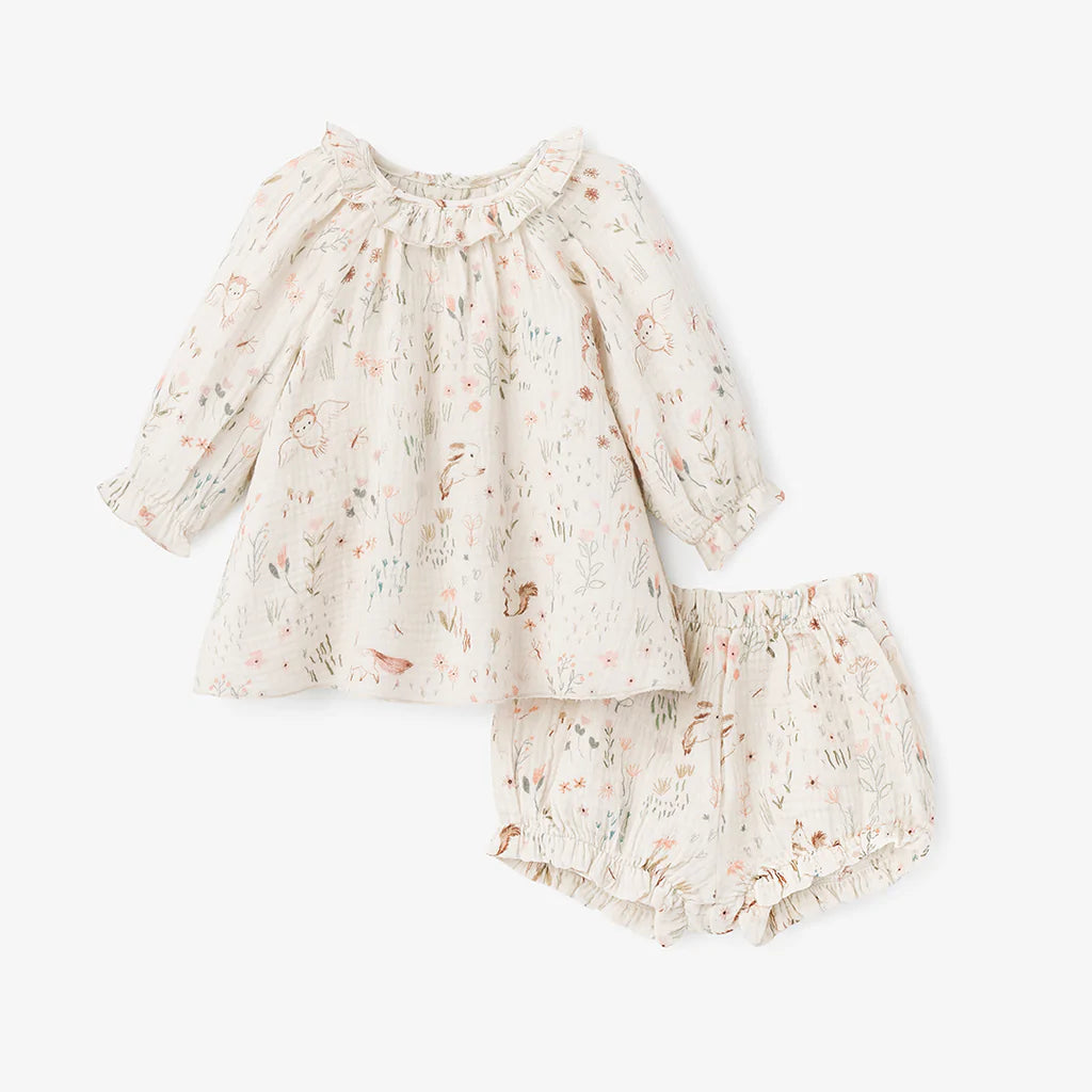 Muslin Owl Print 2 PC Set 3-6m